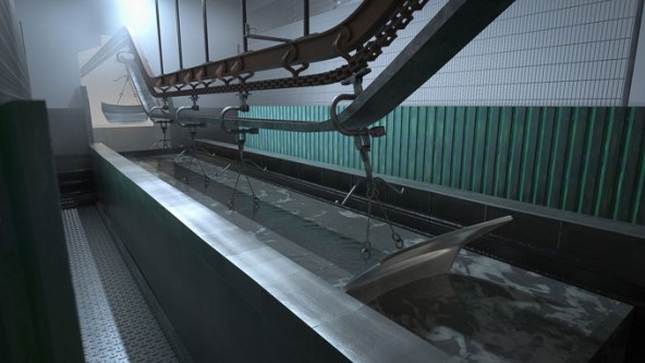 Since immersion sensors can only be used to a limited extent in the cataphoresis process due to the strong currents, users usually measure levels here without contact. However, the conveyor linkage and other structures between the level sensor and the immersion bath can lead to unwanted signals and incorrect measurements of the immersion bath level.
