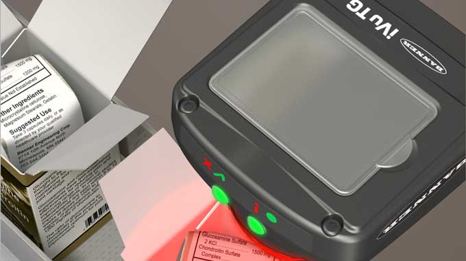 To confirm that each unit includes a product information insert, an iVu Series sensor by Banner Engineer is mounted above the packaging line. The sensor is configured for a Match inspection and checks that the product information leaflet is inserted into each package of medication. The leaflet can be placed in any orientation but must face up.The sensor can detect 360 degrees of rotation to find the insert. If the insert is missing or upside-down, the sensor sends a fail output to the line, and the package is rejected.
