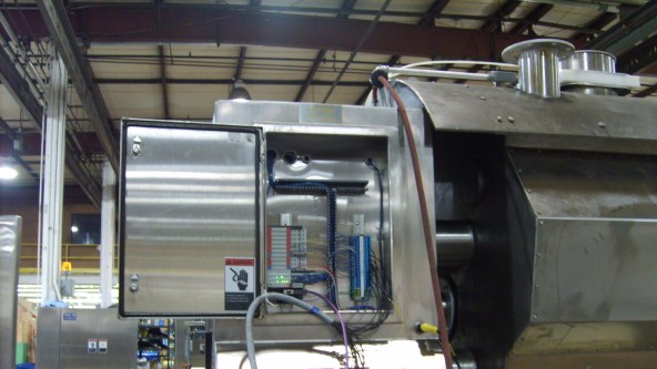 To address these issues, Peerless chose to implement distributed I/O to remove the main control panel away from the potentially harsh environment. The company accomplished this by creating substations on each machine using Turck USA’s BL20 EtherNet/IP terminal-wired I/O. BL 20 is an IP 20-rated I/O designed for cabinet installation, and provides the company with the local control it needs on the plant floor without the primary control panel. “We chose to use Turck’s BL20 line because it’s easy to troubleshoot at the machine,” adds Cruse. Peerless also uses Turck NEMA4X rated junction boxes within the distributed I/O structure, and runs all localized sensors and other equipment through these boxes.