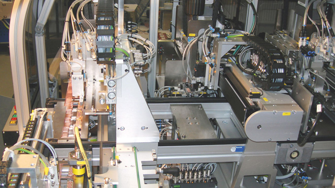 The parts carrier and the corresponding stations are equipped with the BL ident RFID system from Turck, which is connected to the plant’s control system via Profibus DP. Overall, six read and write points are currently integrated in the system: one on the ramp of the loading area, one on each in the maintenance positions in front of the three wire bonders, one with the transverse transport and one in front of the reject part punch. “In the system expansion phase that is now complete, we could also have handled the identification of the parts carrier with alternative technologies,” explains CEO Grünbauer, “but precisely because of the modularity and expansion capability of the system, we decided in favor of the RFID technology. It means that the system can be easily upgraded.”